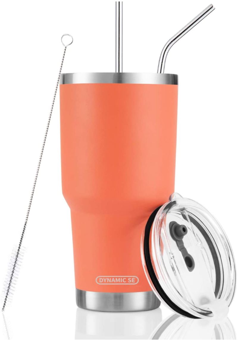 Why This Yeti Tumbler Alternative is Suitable: This bright orange tumbler contains 30 ounces of liquid and comes with all the ornaments and attractions you'd expect, including a sweatproof exterior and double-wall insulated construction that keeps hots hot for up to six hours and cold for up to 24 hours. This cheap Yeti knockoff also comes with two stainless steel straws and a straw-cleaning brush, making it excellent for smoothies and other cold beverages. You can sip right from the lid if you want to switch to a hot drink and don't want to use a straw.